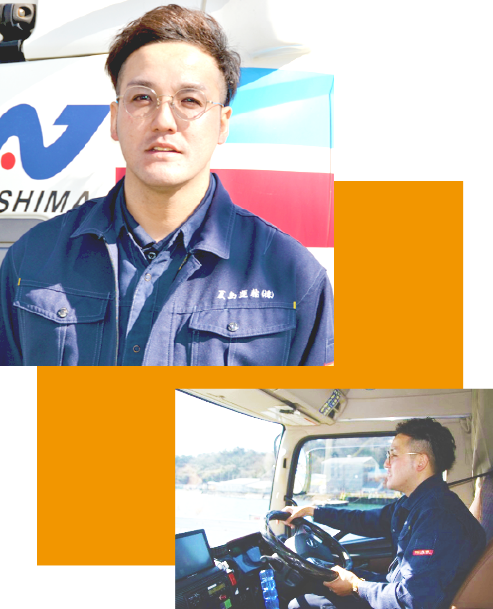 私は13年前に夏島運輸に入社しました。当時19歳で、初めての就職でしたが、運転が好きだったので大きいトラックに乗るのは楽しく、ドライバー時代には沖縄以外の全ての県に行きました。一番印象的だったのは鹿児島で、風景がとても良かったことを今でも覚えています。一番大変だったのは大雪で5m先が見えない中での運転と、平ボディに乗っていたので固縛や荷締めを覚えることでした。
